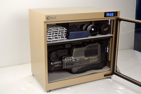 Tủ chống ẩm cao cấp Nikatei NC-80HS viền nhôm mạ vàng sang trọng.